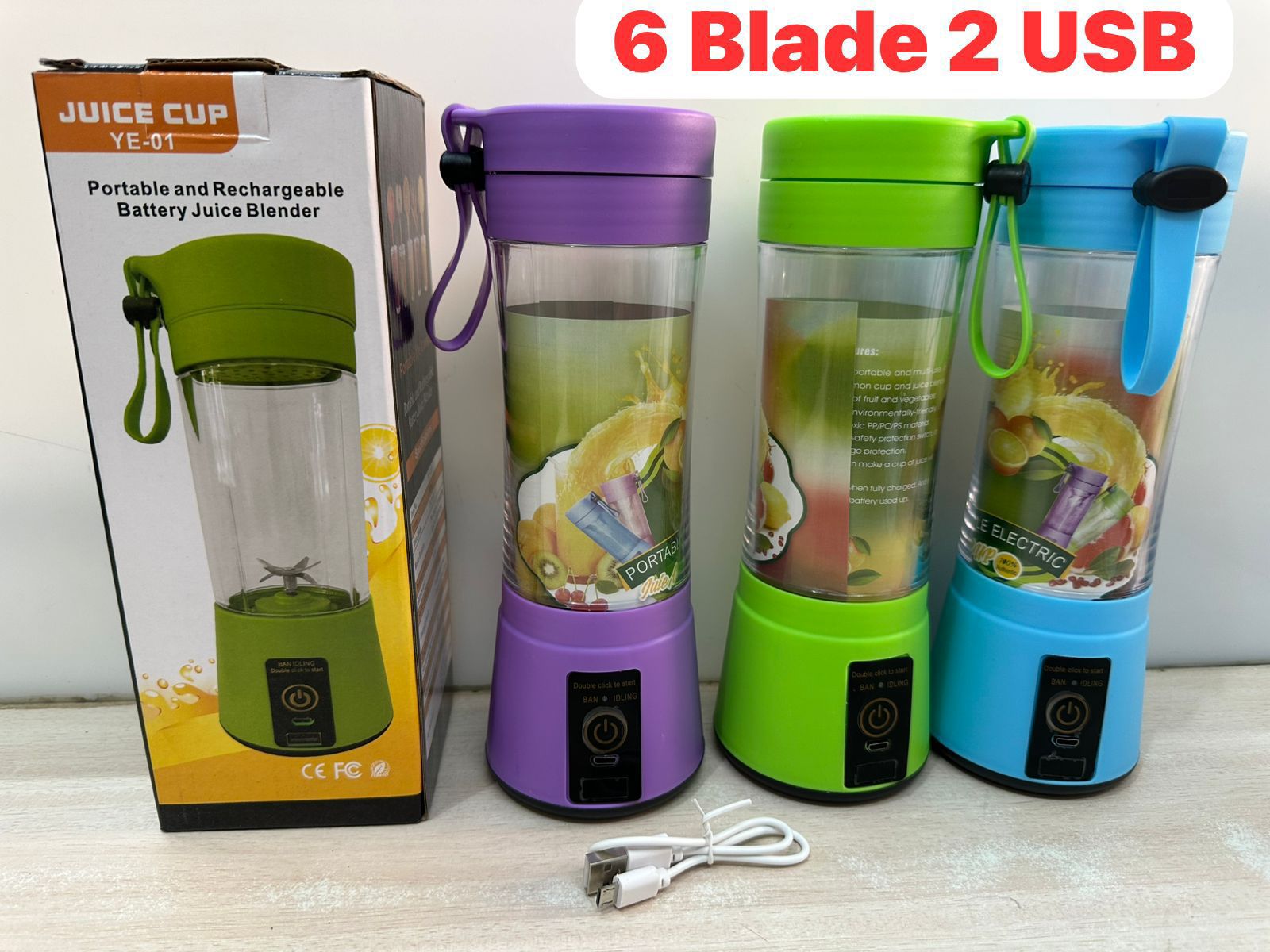 The Portable Rechargeable 6-Blade USB Juice Blender is a compact and powerful mini blender designed for making fresh juices, smoothies, and shakes anytime, anywhere. Equipped with 6 sharp stainless steel blades, a rechargeable battery, and dual USB charging support, this blender delivers efficient blending in seconds. Its lightweight and portable design makes it perfect for home, office, gym, travel, and outdoor use.